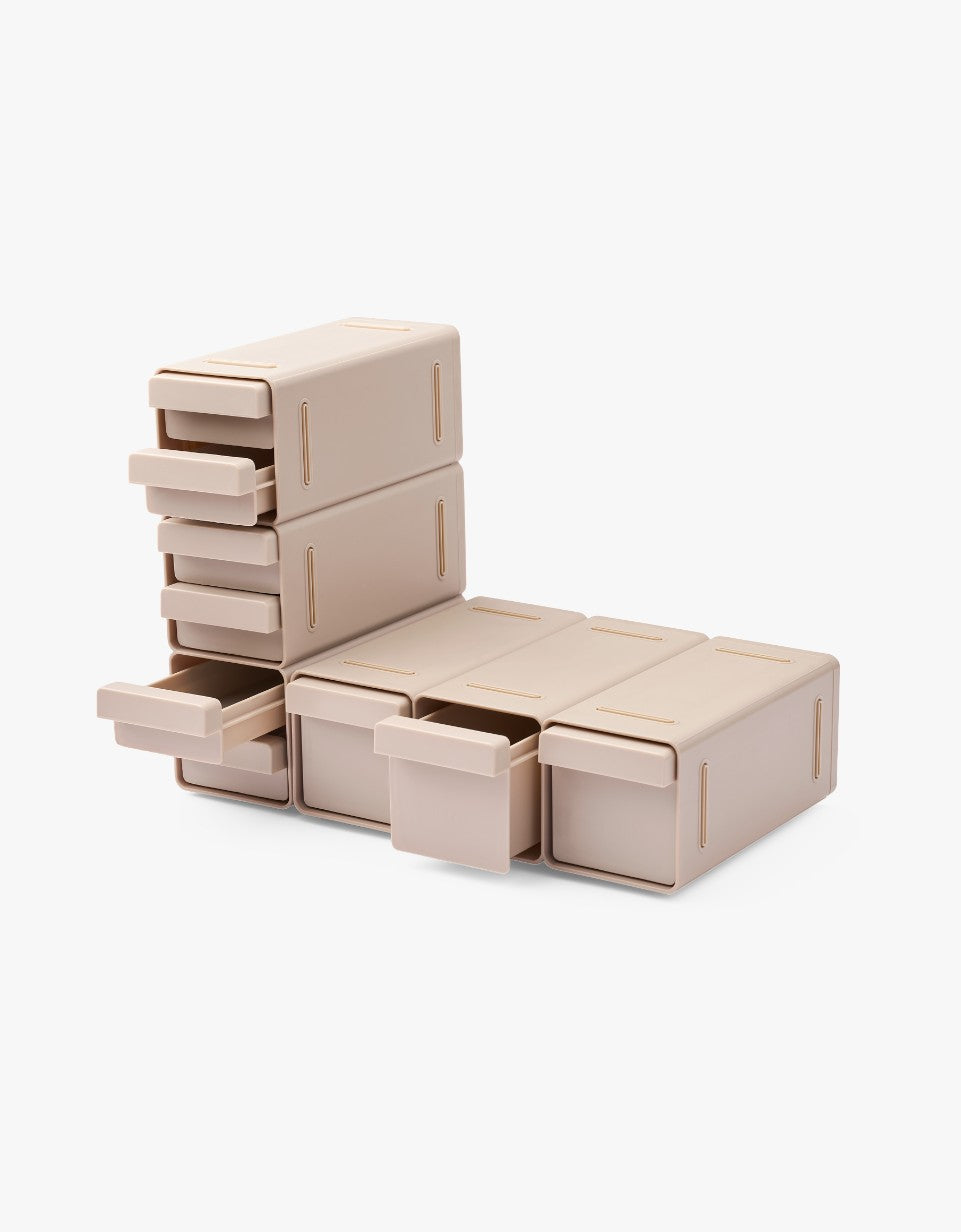 As gavetas encaixam independentemente de as estruturas das caixas serem colocadas na vertical ou na horizontal