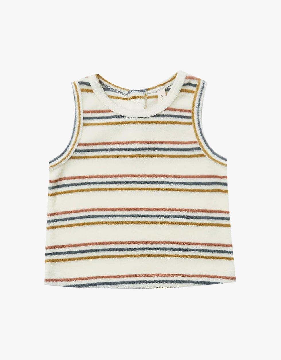Basic top with a loose fit made of terry fabric. Closes at the back for easy changing.