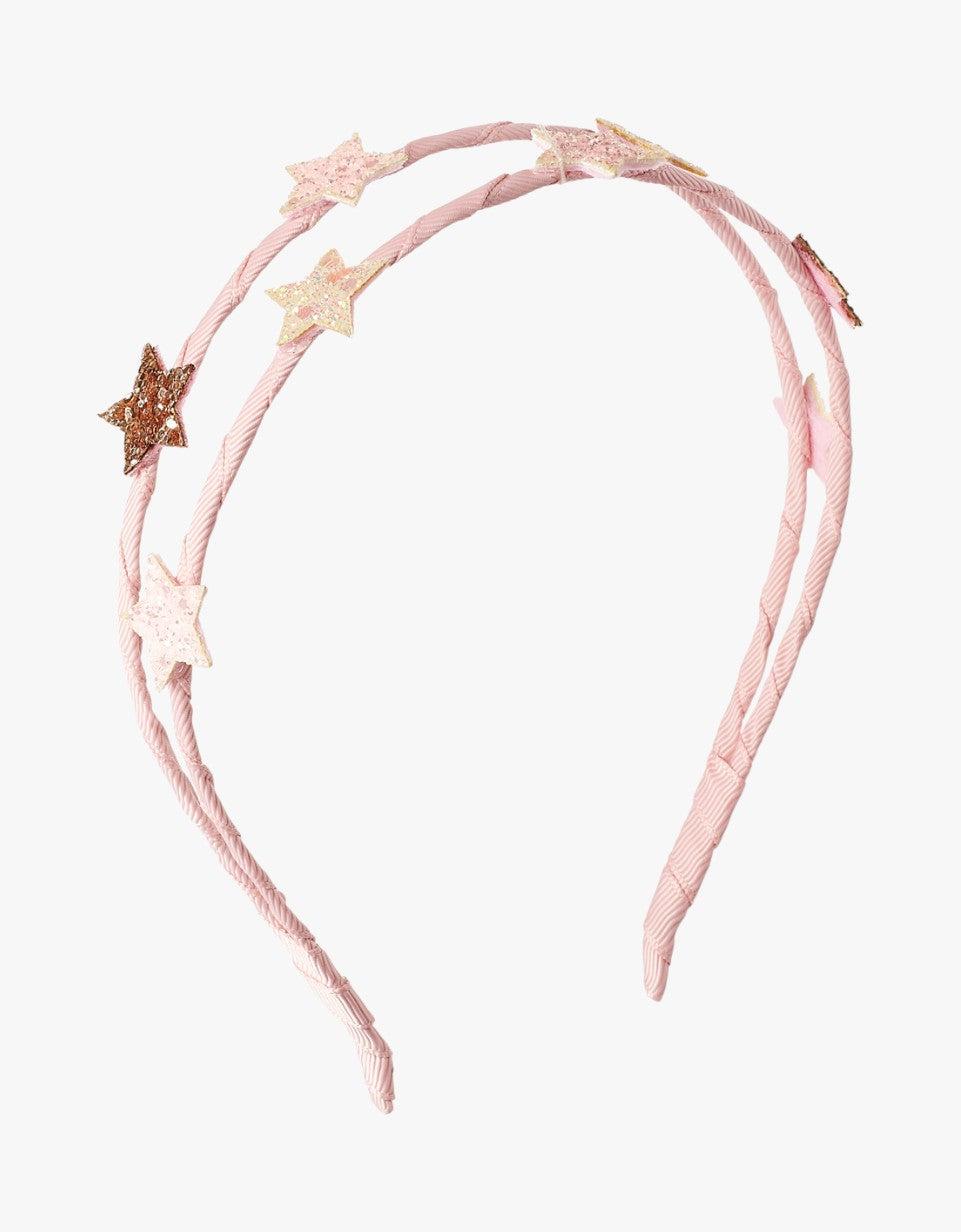 A bandolete dupla apresenta duas faixas de estrelas brilhantes, perfeitas para dar um toque de brilho a qualquer look de festa! Forrada com uma fita rosa suave, foi desenhada para proporcionar um ajuste confortável.