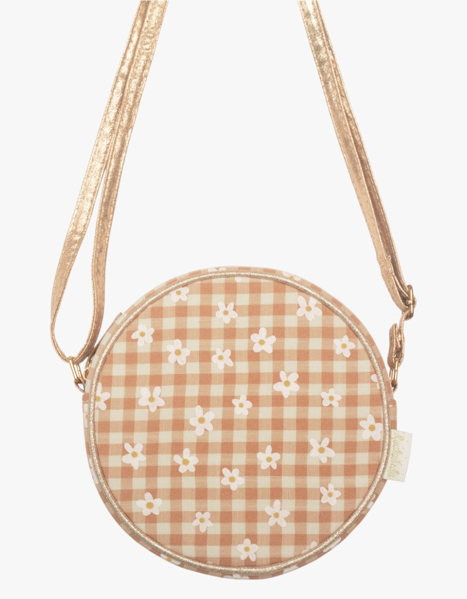 Fabricado com tecido xadrez e decorado com margaridas, é o local perfeito para guardar aqueles essenciais de verão. Esta bolsa é totalmente forrada, tem fecho de correr e alça ajustável para usar a tiracolo com ponto de fixação para segurança.