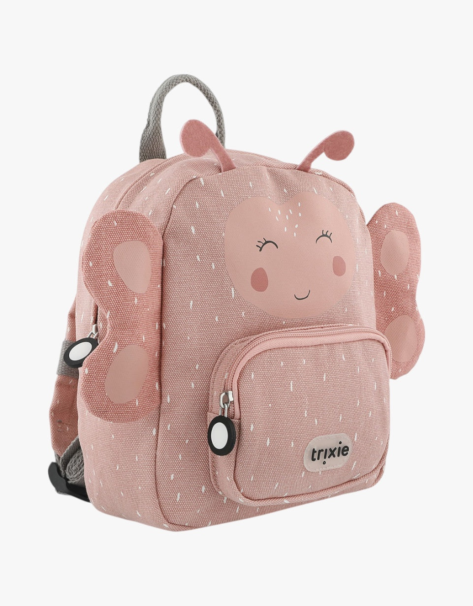 A mochila tem alças de ombro ajustáveis e acolchoadas e uma alça curta na parte superior para segurá-la e pendurá-la facilmente em qualquer lugar. A alça torácica impede que as alças dos ombros caiam. A mochila tem um grande compartimento e um pequeno bolso frontal, onde pode armazenar um pequeno lanche, por exemplo. O bolso principal e frontal têm um fecho que permite que as crianças abram e fechem facilmente a mochila. Inclui uma etiqueta de identificação no interior da mala e, além disso, a mochila é repelente à água.