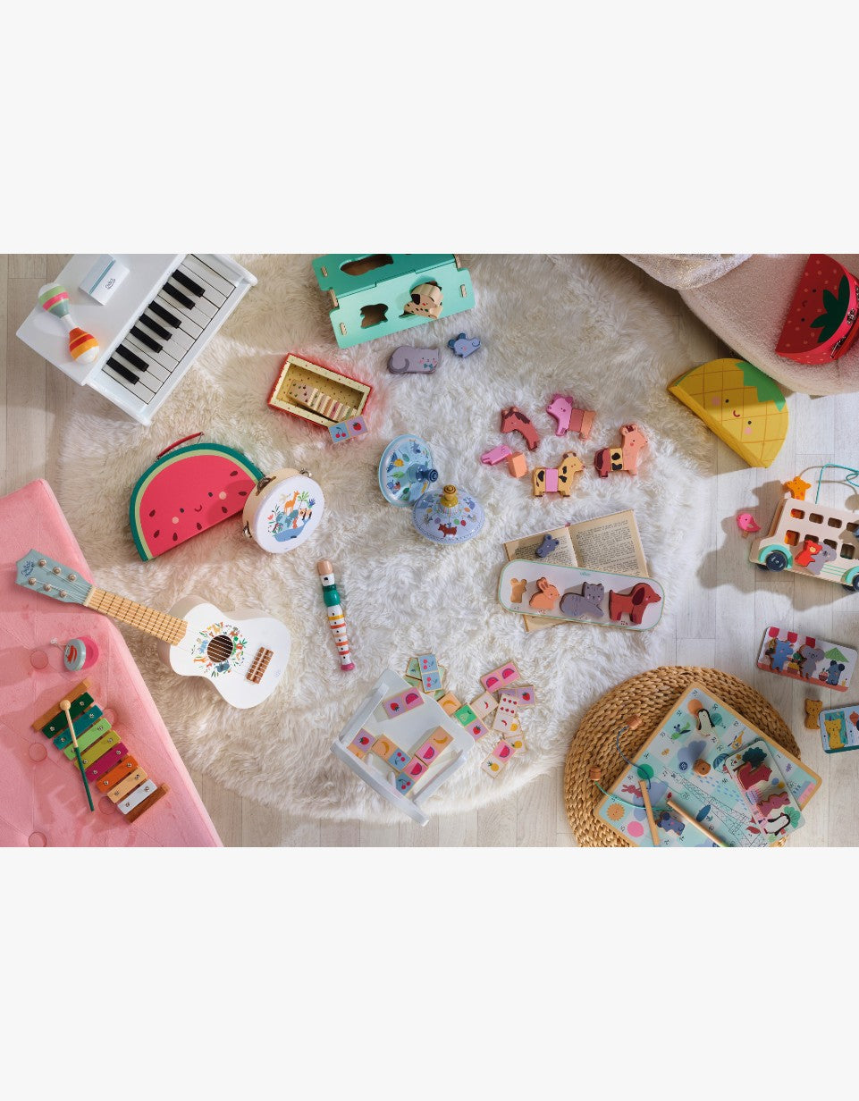 Este jogo reversível de dominó em madeira também apresenta às crianças conceitos matemáticos básicos e enriquece o seu vocabulário. Ao combinar imagens idênticas, a criança descobre as noções de correspondência e associação, fundamentos essenciais para a aprendizagem dos números. O tema das frutas e legumes enriquece também o vocabulário da criança, que aprende a nomear e a identificar as diferentes ilustrações. Este jogo educativo e divertido é uma ferramenta completa de desenvolvimento que oferece à criança um momento de brincadeira ao mesmo tempo que promove o seu desenvolvimento integral.