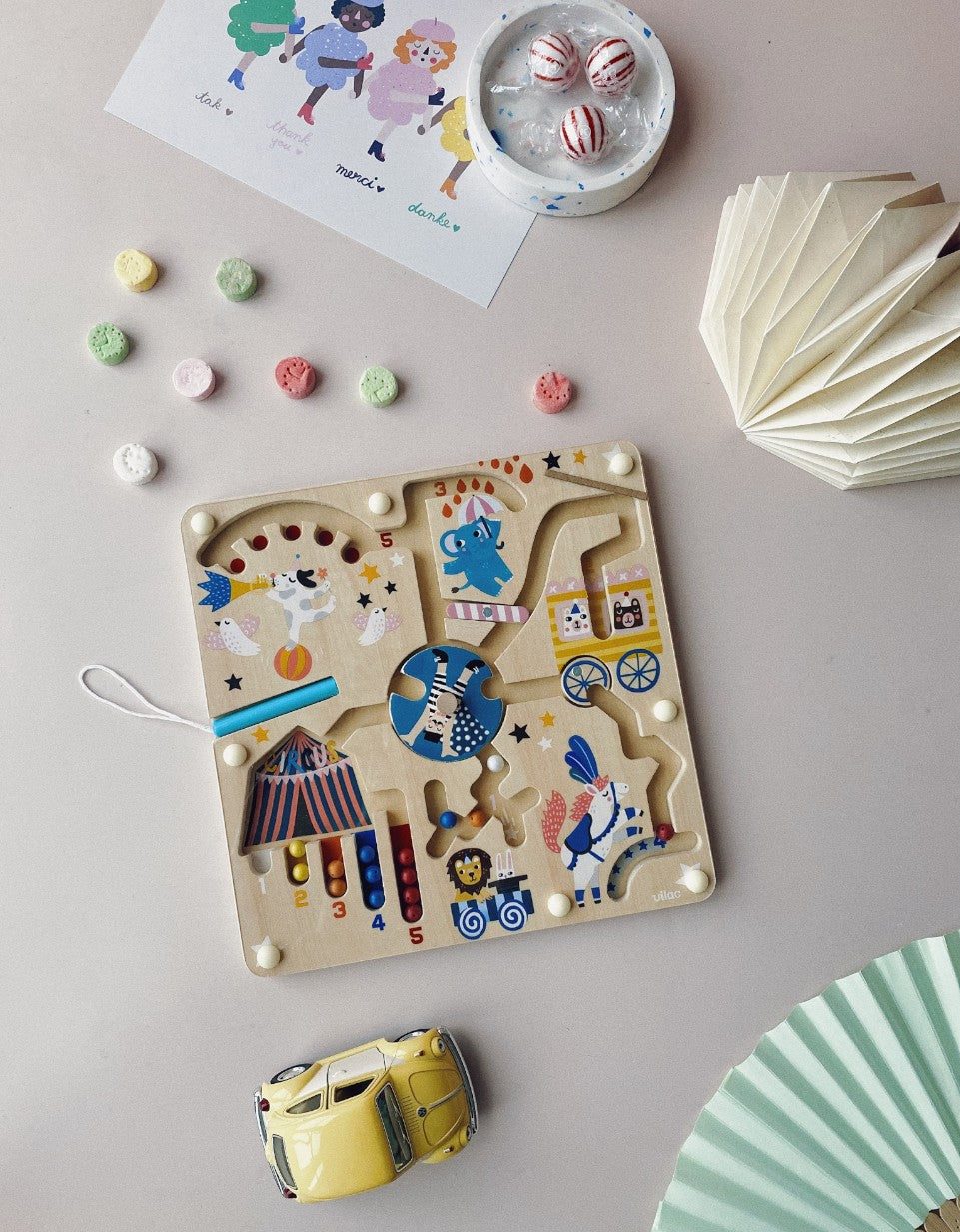 Este labirinto magnético circo, poeticamente ilustrado por Michelle Carlslund, foi criado para estimular os sentidos do seu filho.
